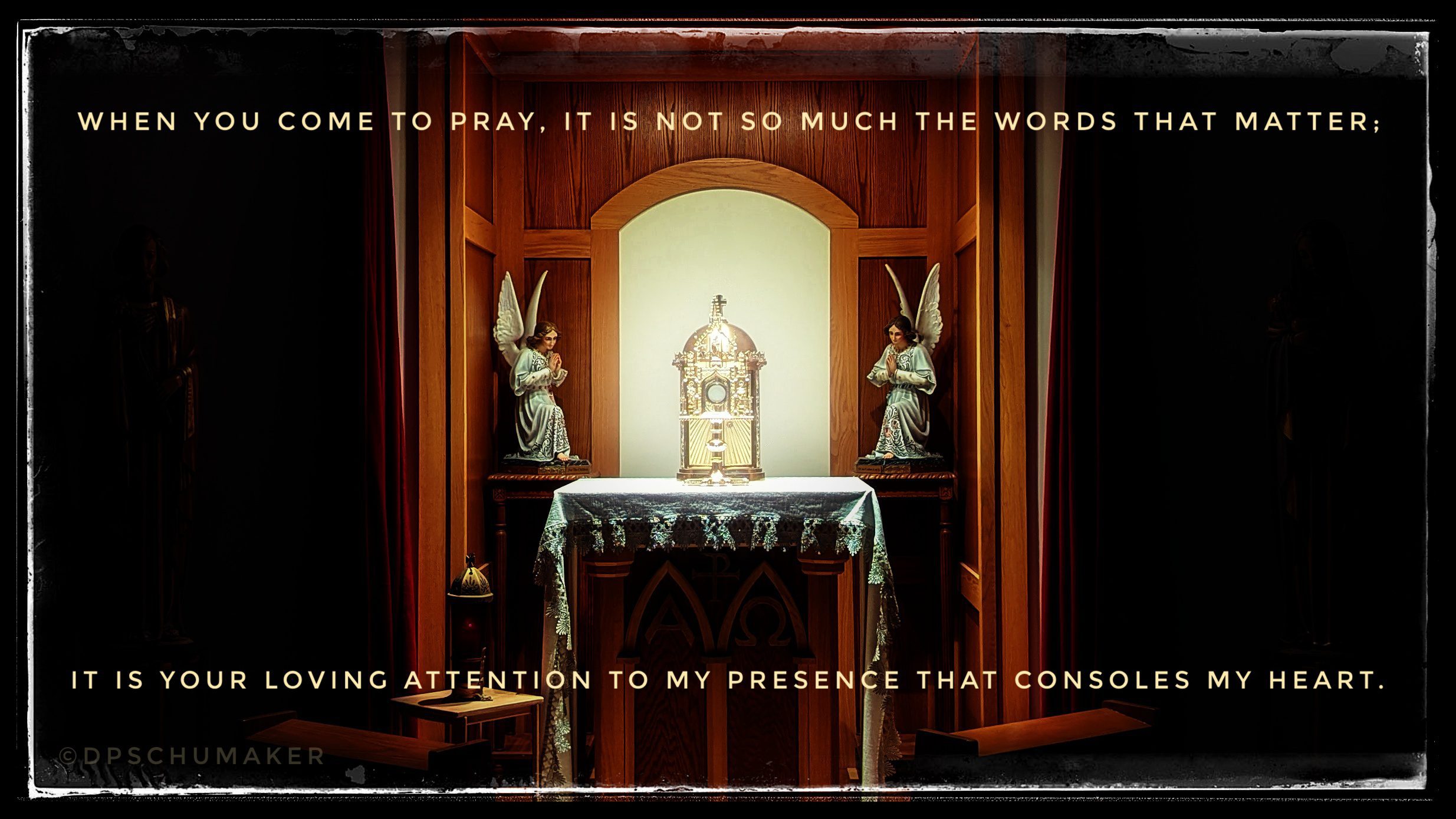 It is our responsibility and privilege to ensure that someone is always present in front of Our Lord. Adorers commit to spending one hour a week in the Adoration Chapel in prayer with the Lord.