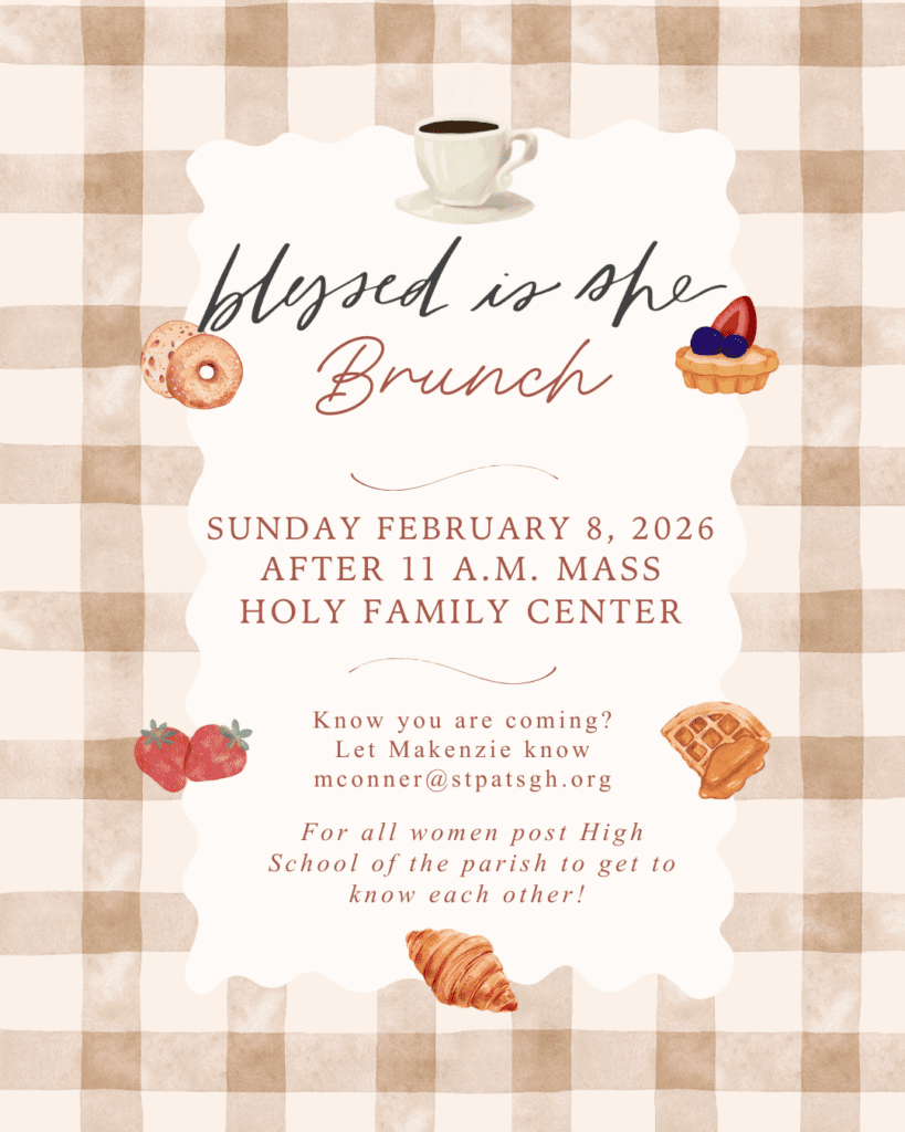 If you feel called to help with this event in any way, please reach out to Makenzie Conner at mconner@stpatsgh.org. If you already know you are planning to attend, you are welcome to email mconner@stpatsgh.org as well — this simply helps us plan for numbers, but RSVP is not required. Come as you are.
