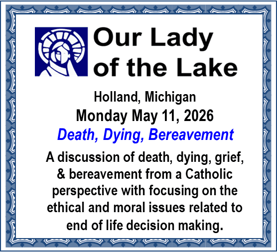 A series of discussions on Living with Purpose, Caregiving, Mental Health and Aging, and Death, Dying, and Bereavement is being presented by our Lakeshore Parishes.